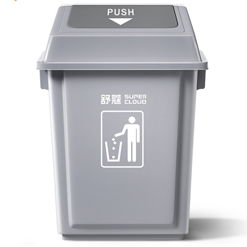 快惠-商用塑料弹盖垃圾桶(中大号、高60CM、42L)