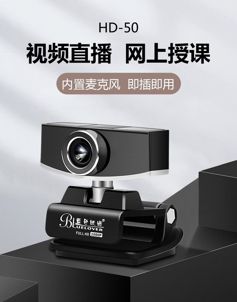 蓝色妖姬(BLUELOVER)电脑摄像头直播高清带麦克风台式电脑笔记本视频会议网络教学考试家用 HD-50