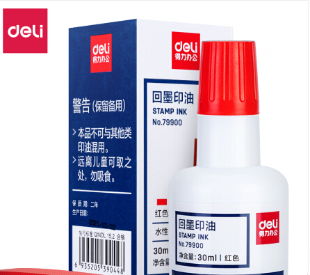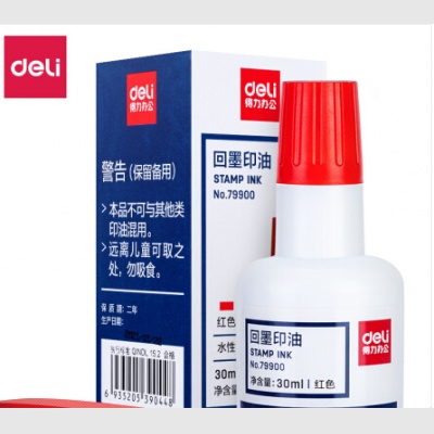 得力(deli)30ml水性回墨印油 发票合同财务回墨印章用油 办公用品 红色79900