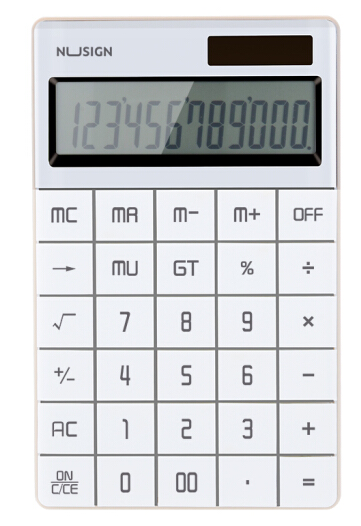 纽赛(NUSIGN)办公计算器 白NS041 双电源计算机 按键可拆卸 太阳能电池