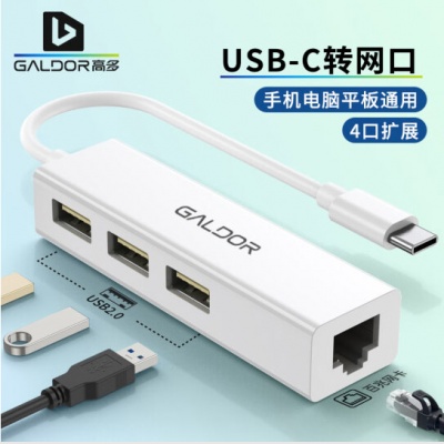 高多C61 TYPE-C转USB2.0+ 百兆网卡(3个USB+百兆网卡)