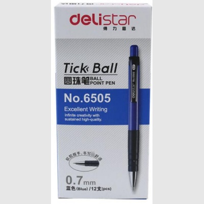 得力(deli)按动圆珠笔 6505蓝色圆珠笔(12支/盒,整盒出售)