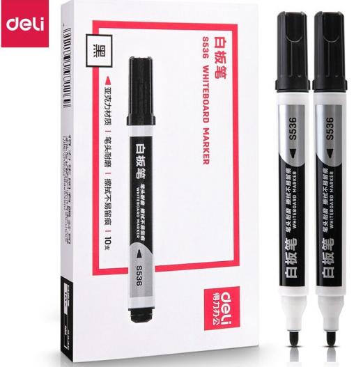 得力 S536 白板笔黑色 10支 黑板笔办公用品易擦亚克力粗头办公文具