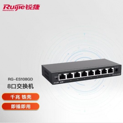 锐捷(Ruijie)RG-ES108GD 铁壳非网管企业级交换器 8口千兆交换机