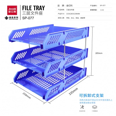 金亿利 三层文件盘/文件座 SP-077 蓝色