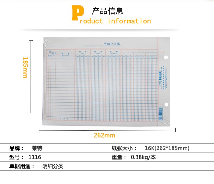 莱特(laite)明细分类账账芯 多栏式帐芯 帐页1116 (本)