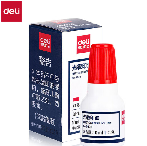 得力(deli)10ml 9879 财务印章光敏印油 红色
