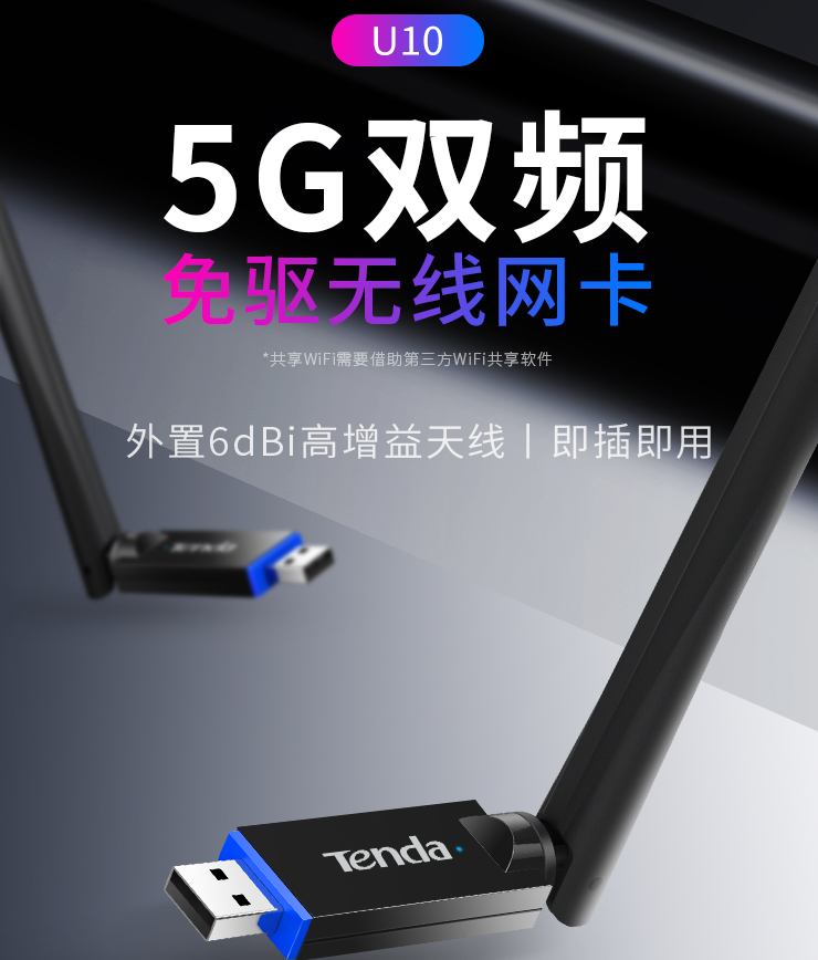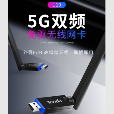腾达 U10 免驱650M USB无线网卡 5g双频 随身WiFi网络无线接收器 发射器