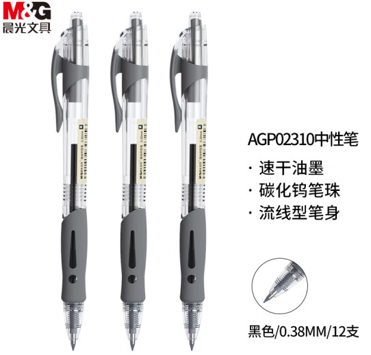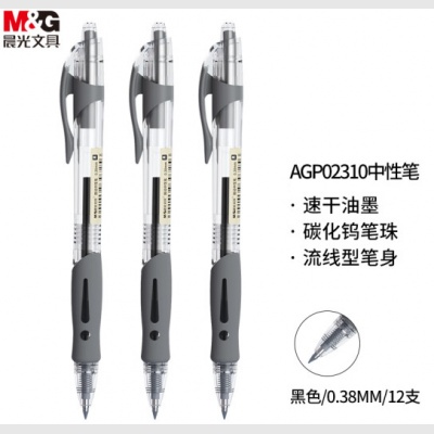 晨光 文具0.38mm中性笔 AGP02310 按动子弹头(黑色 12支/盒)