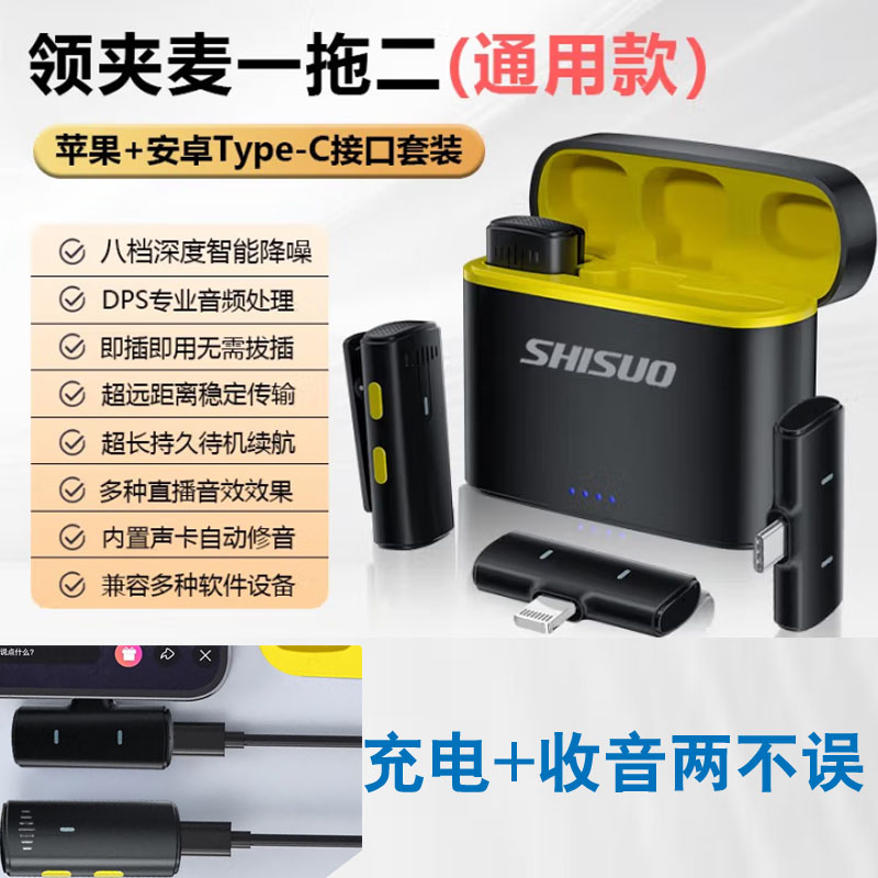 施索 无线领夹收音麦克风A5PRO(一拖二苹果安卓通用)