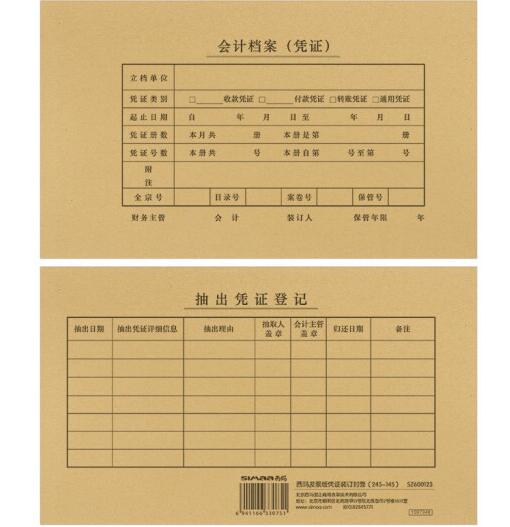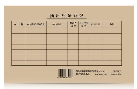 ●西玛发票版系列凭证纸配套装订封面 西玛发票版凭证装订封面,与发票版(241*139.7mm)系列凭证纸配套使用;装订效果整齐美观;实现企业规范、专业、整齐的基础档案管理。 ●采用高档牛皮纸,持久耐用采用高档牛皮纸,专业设计,质感细腻,不翘边,不易断裂,不起皱变形,持久耐用; ●信息标识,查询方便信息标识齐全,印有“表格名称”、“附单据栏”、“制表日期与页码栏”等,便于按日期、名称、单据数量进行查询。