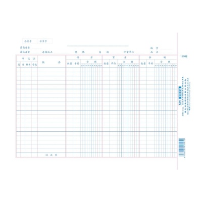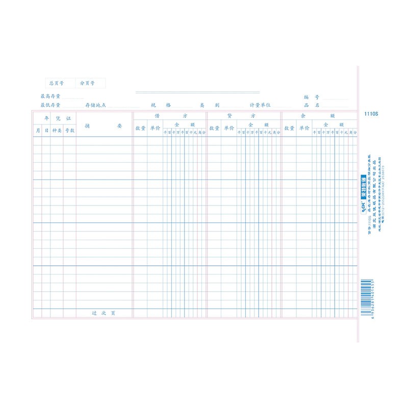 品牌:Right/莱特名称:16K库存材料(商品)账账页型号:1110重量:0.38kg/本规格:262*185mm 16K85页
