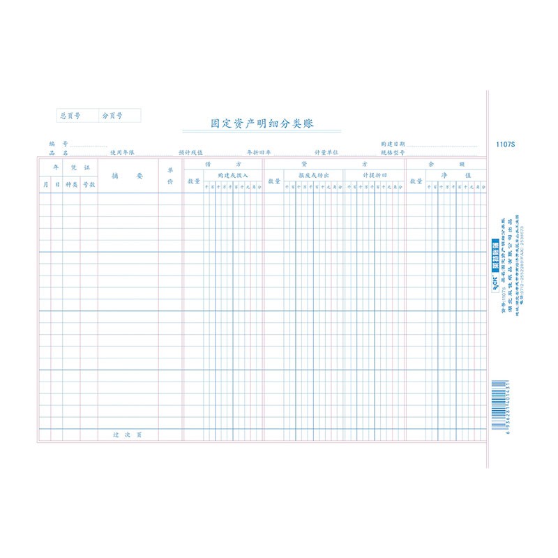 莱特-固定资产明细分类账账芯1107(16K、262mm*185mm、100页)(本)