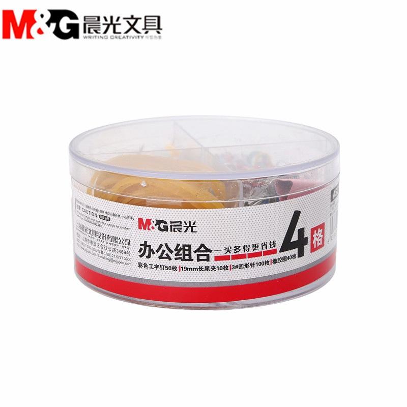 晨光4格办公组合套装ASC99360(工字钉+橡皮筋+回形针+长尾夹组合)