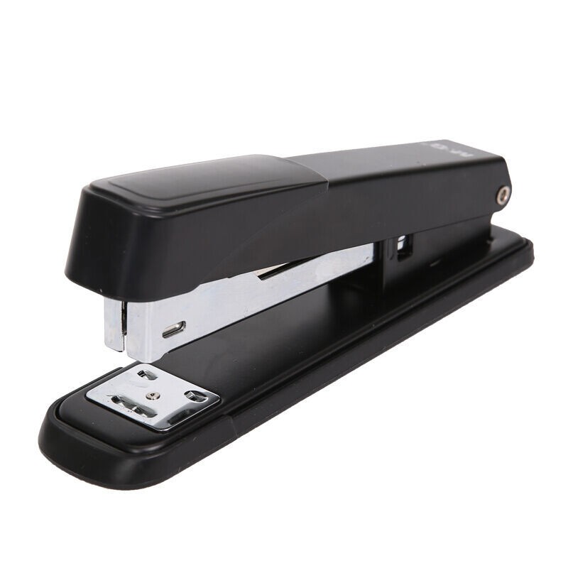 硬质铁质机身 防锈处理 尖头尖脚 穿透力强 适用12#订书针 入纸可达80mm 装订厚度80克纸2-50页内部刚机构 订书机有两种不同的装订方式可以选择 方便观察钉数的观察孔 底部附有防滑橡胶底座 防滑 稳定安全