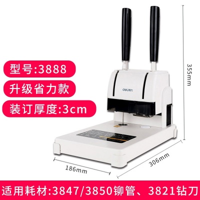 得力 财务凭证装订机3888(可装订30mm、热熔铆管打孔机)