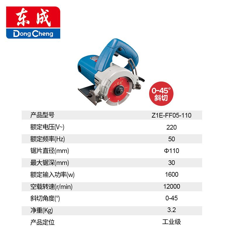 东成 石材切割机Z1E-FF05-110云石机大功率斜切45°大理石墙体开槽