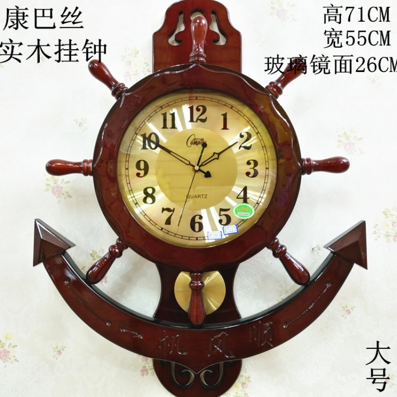 客厅挂钟中式仿古/钟表客厅时尚/造型/中式船舵/舵手/创意/古典 康巴丝大号实木色