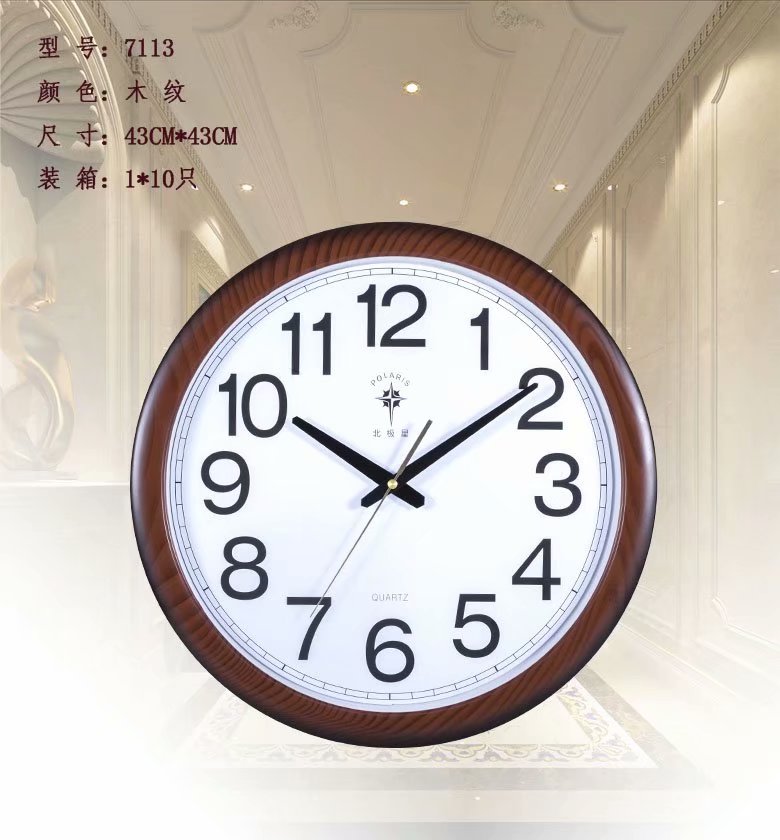 北极星圆形时钟时尚钟表普通款直径43厘米7113木纹