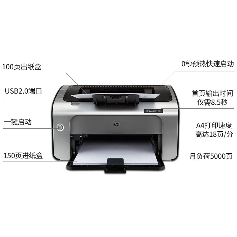 惠普(HP)黑白激光打印机LaserJet Pro P1108(A4、小型商用打印)