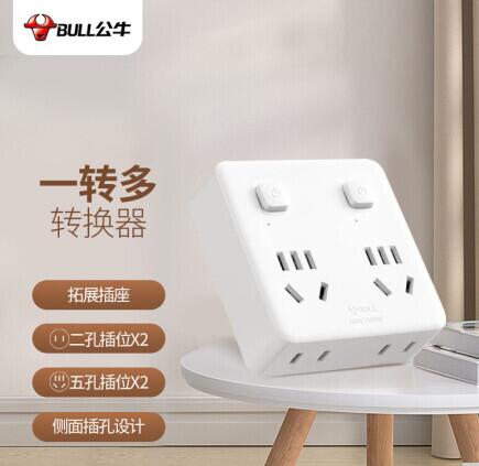公牛 插座插头转换器多孔电源插头多功能插线板面板无线插排 93223(分控一转四)