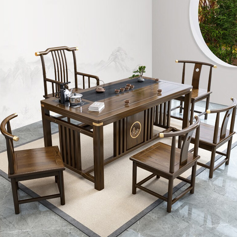 快惠 茶桌椅组合(160*80cm单桌+1圈椅+4牙椅、实木)