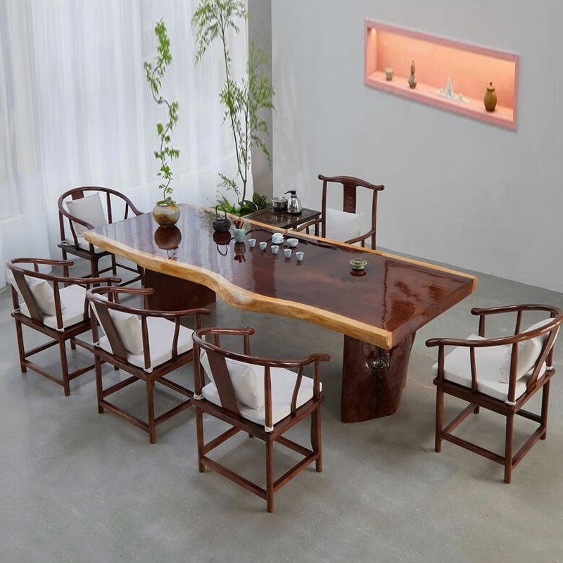 快惠 茶桌椅组合(210*90cm、1茶桌+5椅子、实木)