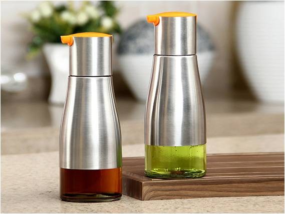 两只油瓶的油嘴,采用指压控油的设计,简单、时尚;